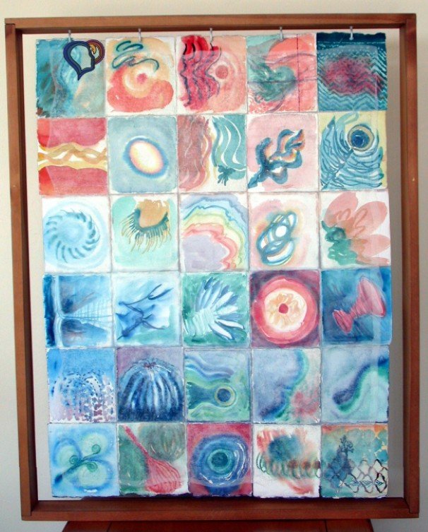I framed this painting suspended in a plexiglass box as I was taught by professor Lou Rizzolo in graduate college. I submitted it to the Westminster College exhibit Faith in the Arts – A Gallery Presentation by Alumni June 2002, to which I had been invited. Unfortunately it was pierced and damaged in transit, but the shipping insurance claim allowed me resources to continue creating healing art for many years. I was also given an opportunity to have it featured in the film “Art and Medicine in the Sunshine State” show 206 in The Art of the Living Gallery, a VeriaTV series produced by AMSPictures.com in 2008. These experiences made me realize that art can truly be a living creation of the artist that has its own life and way of reaching out into the world to touch others.