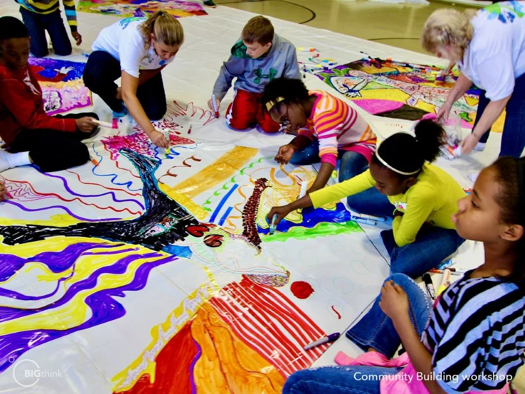 Young students creating Self Scapes for Community Building Workshop in Kalamazoo, MI., ( Nobe Schuler, artist/teacher and BT Team)