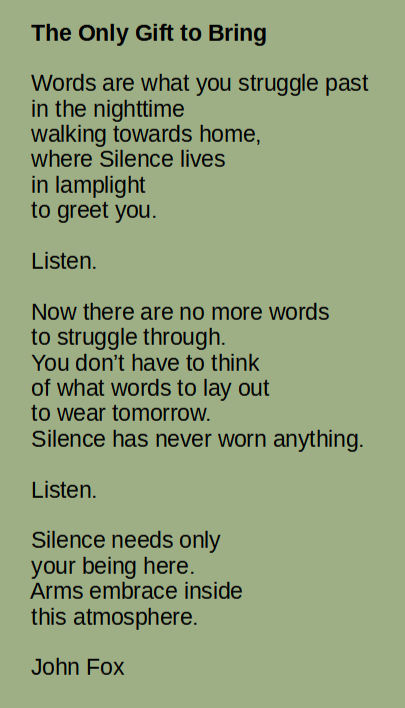 John Fox is a poet, Practitioner of Poetic Medicine and CEO of the nonprofit Institute for Poetic Medicine (IPM) which he founded in 2005. He taught Poetry Therapy as an adjunct for many years in four Bay Area Graduate Programs: The Institute for Transpersonal Psychology, John F. Kennedy University, California Institute for Integral Studies and Holy Names University.